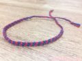 できあがりは2色が交互に並び、かなり細めのミサンガになります。編み方は簡単な工程の繰り返しになりますので初めての人にもおすすめです。